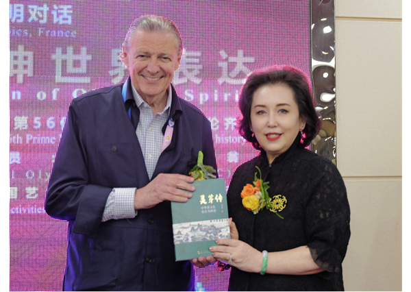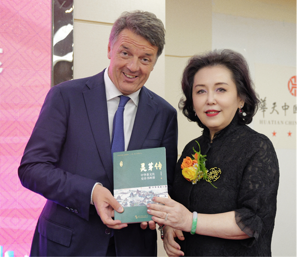 8月3日,中华茶文化大使、中国茶美学与茶科技发展中心主任董晓欣在巴黎向意大利前总理马泰奥·伦齐赠送中华茶文化历史书籍《灵芽传》。