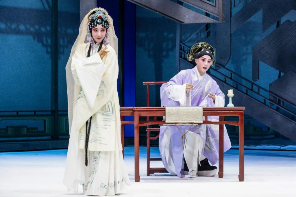 “情不知所起,一往而深……”2025年12月,“百戏入皖·星耀合肥”的舞台上迎来了新编昆曲《重逢〈牡丹亭〉》。当巨幅镜面与断井颓垣、亭台楼阁构成的“折叠园林”在舞台上缓缓展开,四位中国戏剧梅花奖得主同台亮相。特意从南京赶来观戏的昆曲戏迷徐媛媛手握票根难掩兴奋:“没想到30元的戏票就能欣赏到如此高水准的戏曲盛宴!”