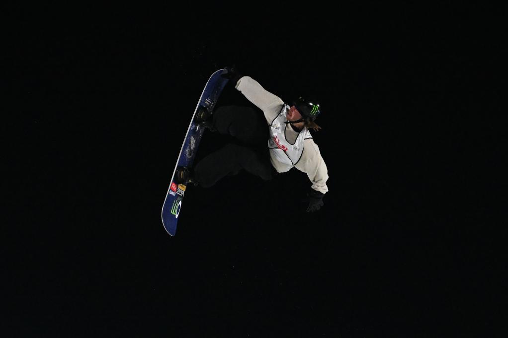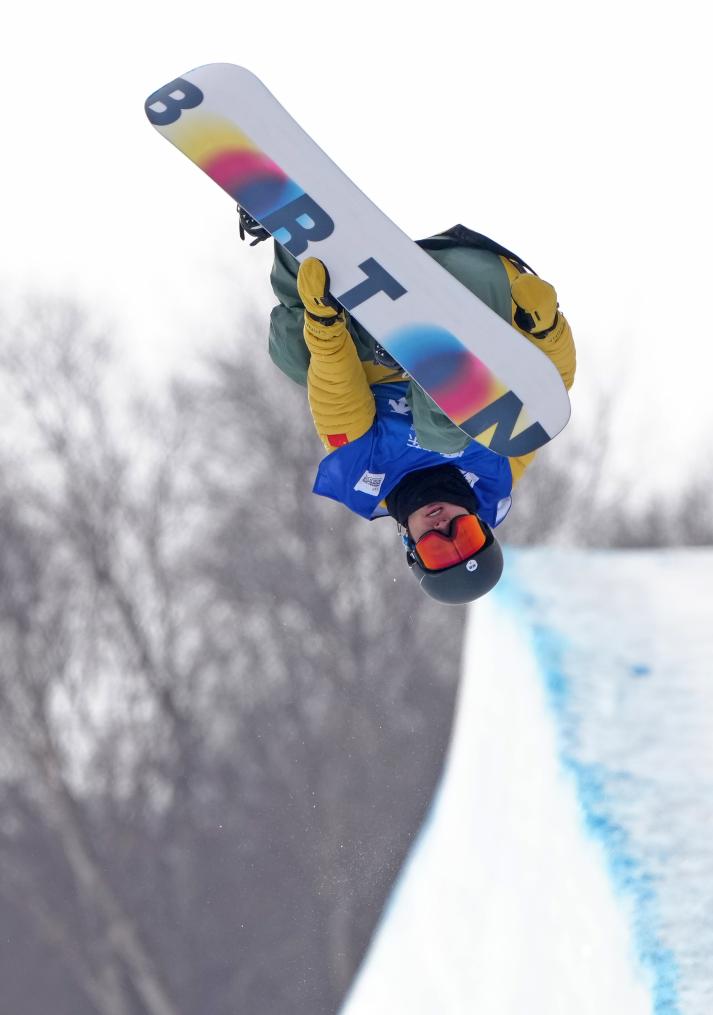 2025年12月10日,王梓阳在国际雪联单板滑雪U型场地技巧世界杯男子组资格赛中。新华社记者 王鹏 摄