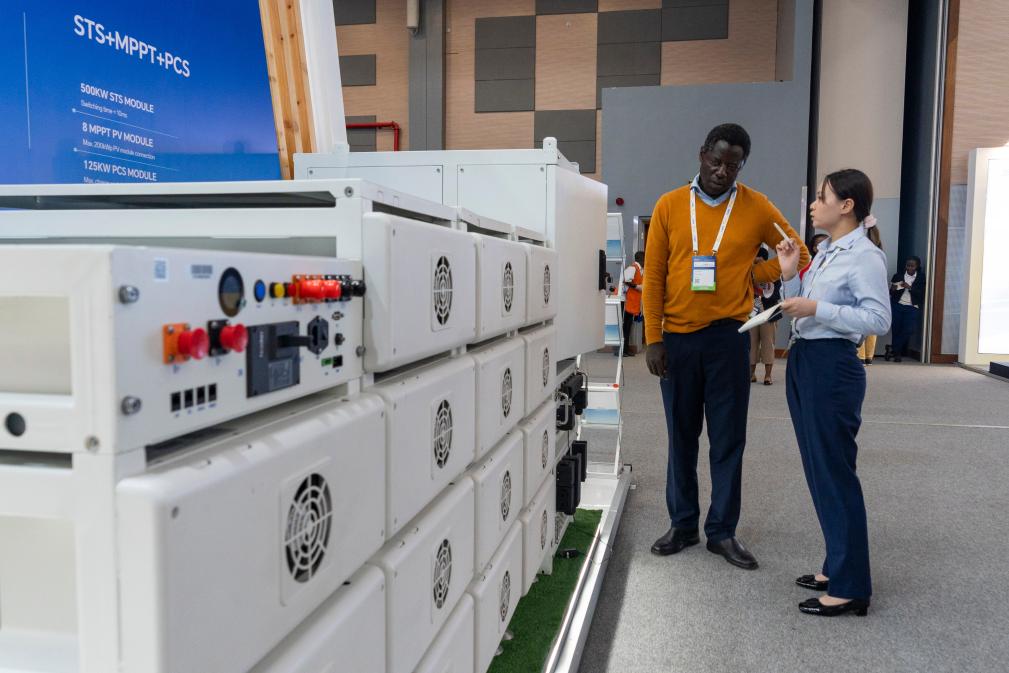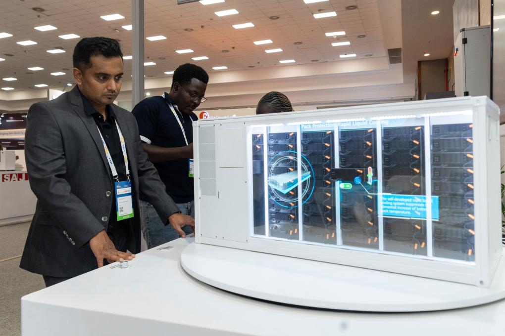 2月3日,在肯尼亚首都内罗毕,参展者在2026年非洲国际太阳能展的先控捷联展台了解储能产品。
