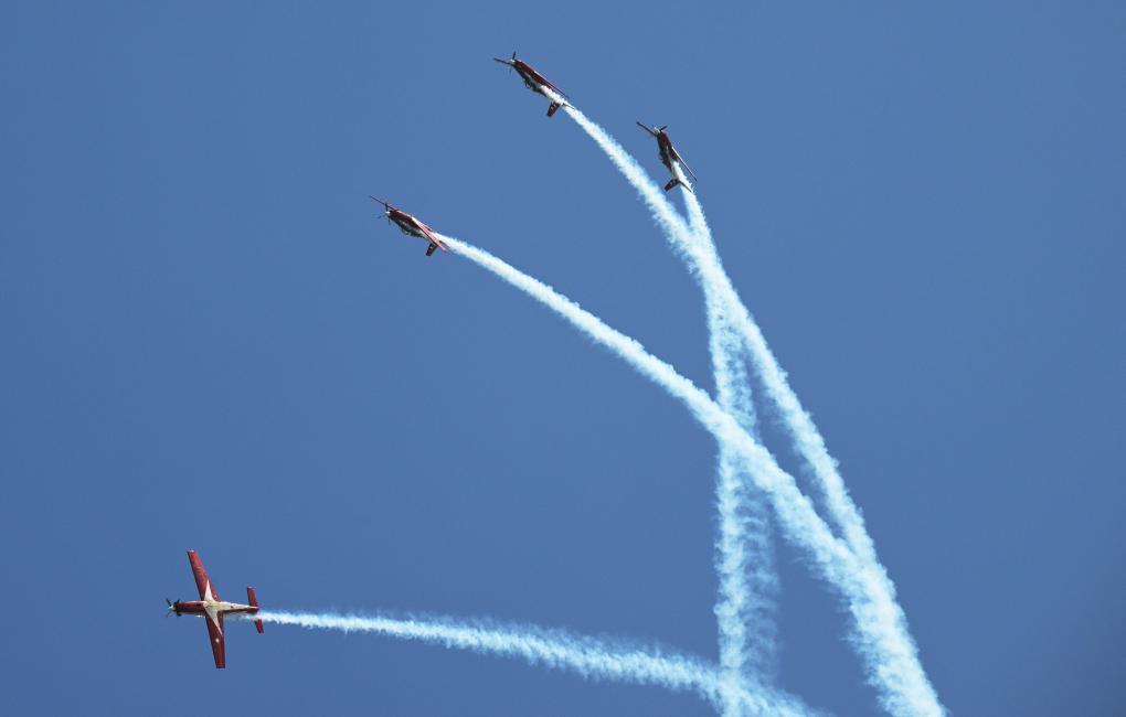 2月3日,印度尼西亚空军木星飞行队在第十届新加坡航展首日进行飞行表演。