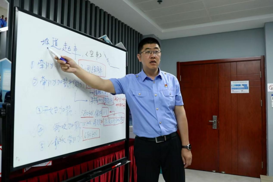 图为朔黄铁路姚星向创新工作室成员讲解重载列车动力学 胡君 摄