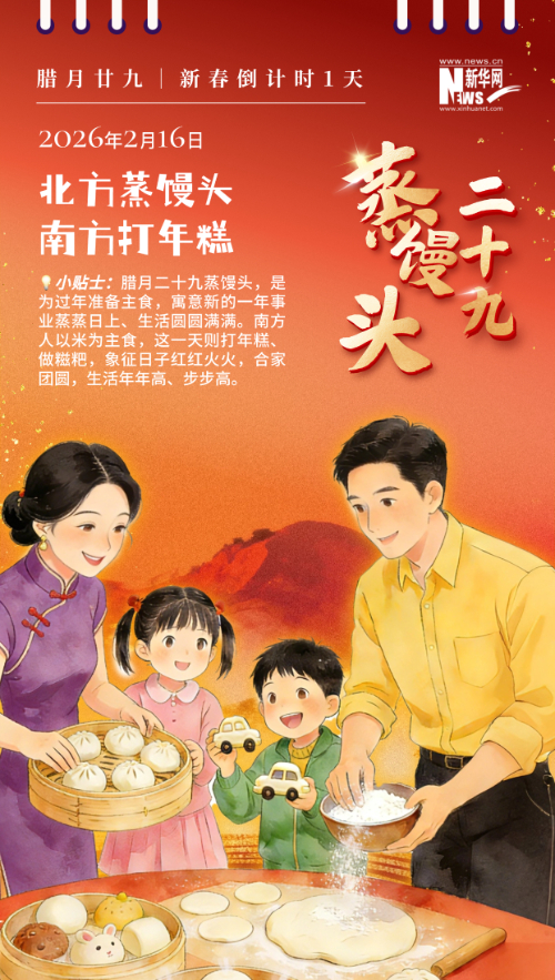 腊月二十九蒸馒头,是为过年准备主食,寓意新的一年事业蒸蒸日上、生活圆圆满满。南方人以米为主食,这一天则打年糕、做糍粑,象征日子红红火火,阖家团圆,生活年年高、步步高。【详细】