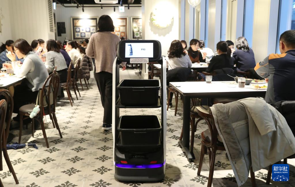 2月10日,由中国制造的服务机器人在韩国首都首尔一家餐厅内工作。新华社记者 姚琪琳 摄