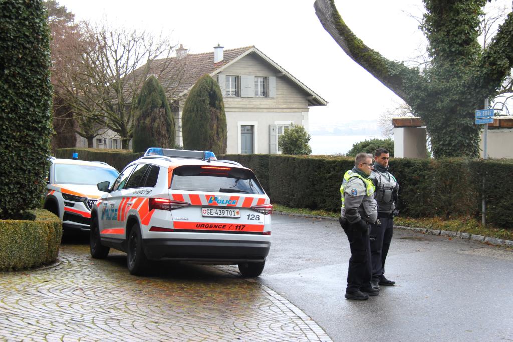 2月17日,在瑞士日内瓦,警察在阿曼驻日内瓦外交代表机构附近警戒。据伊朗媒体报道,美国和伊朗第二轮间接谈判地点在阿曼驻日内瓦外交代表机构内。新华社记者石松摄