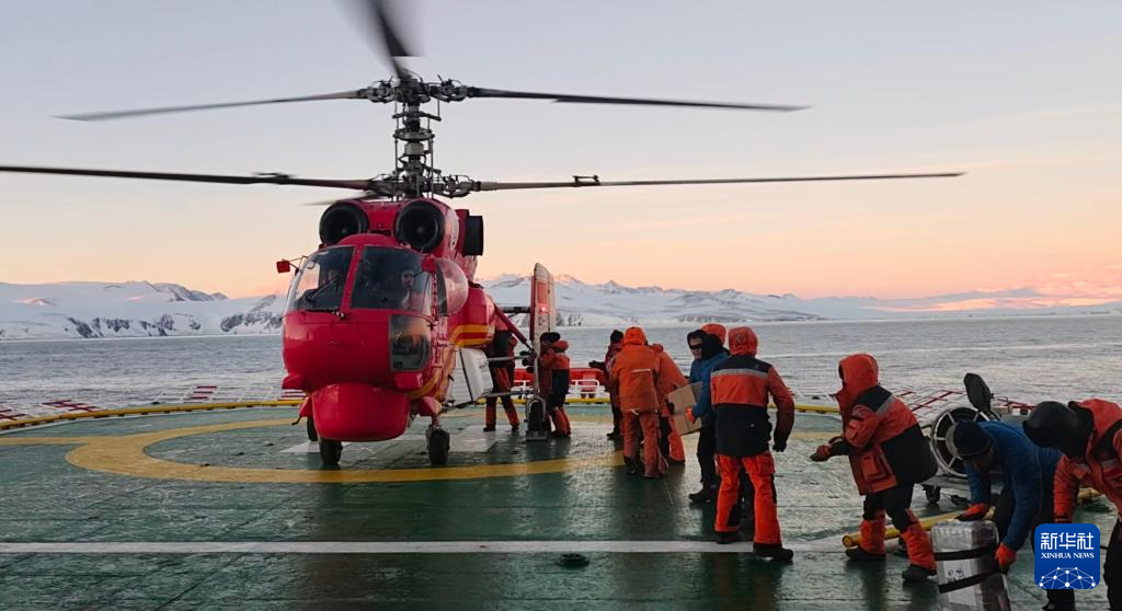 2月21日,69名秦岭站度夏队员分批乘坐直升飞机登上“雪龙”号。后续,他们将随“雪龙”号前往澳大利亚霍巴特港,并转乘飞机回国。新华社发(中国第42次南极考察队供图)
