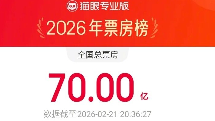 据网络平台数据,2026年年度总票房(含预售)突破70亿!《飞驰人生3》《惊蛰无声》《镖人:风起大漠》暂列年度票房榜前三位。你今年看了几部电影?最推荐哪一部?