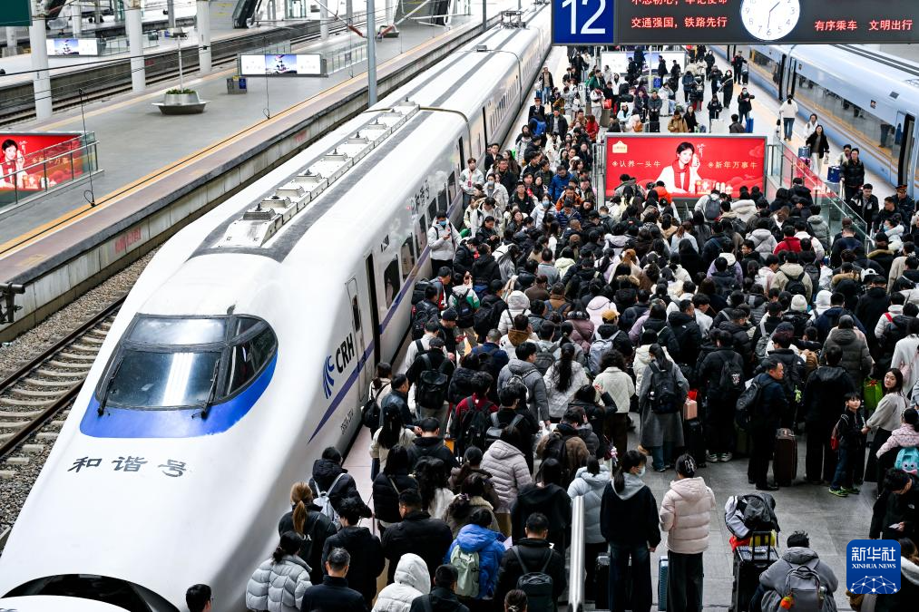 客运方面,2月15日(腊月二十八)至2月23日(正月初七),铁路探亲流、务工流、旅游流交织叠加,客流保持高位运行,全国铁路累计发送旅客1.21亿人次,日均1341万人次,其中2月23日(正月初七)发送旅客1873.3万人次,创春运单日旅客发送量历史新高;日均开行旅客列车12380列,节前节后客流高峰期在京广、京沪、沪昆、京哈等主要高铁干线通道单日安排开行夜间高铁列车超1000列,及时在热门方向和区间增开临时旅客列车,单日最高增开2314列。