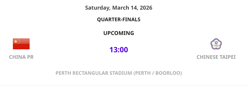 女足亚洲杯八强战,中国队将对阵中国台北队。图片来源:亚足联官网
