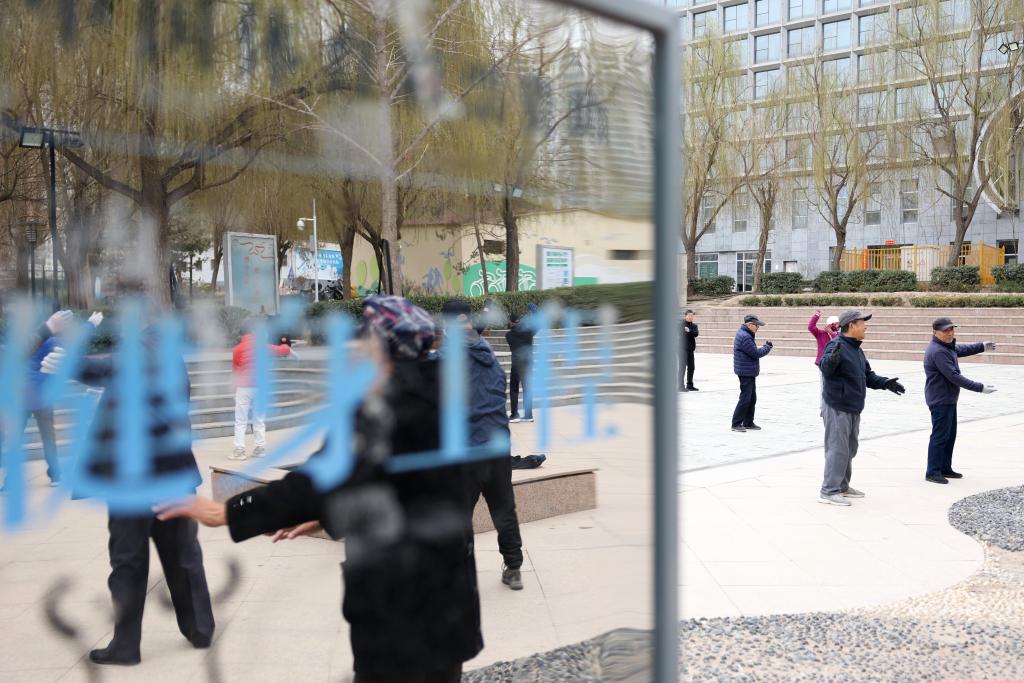 3月18日,市民在兰州市体育公园的广场上锻炼身体。新华社记者 陈斌 摄