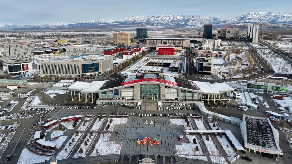 这是2026年2月9日拍摄中国(新疆)自由贸易试验区霍尔果斯片区(无人机照片)。新华社记者 张啸诚 摄