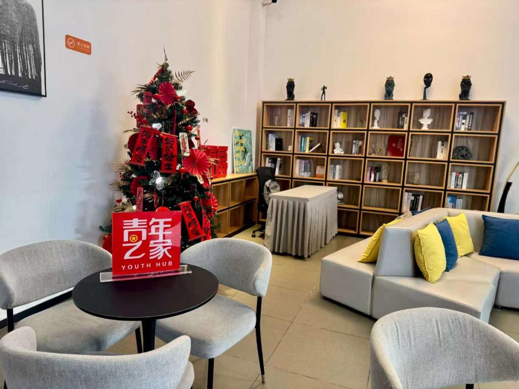 在海南省海口市的“生生汇寓”公寓驿站,设有可供入住青年读书、交流、会议的公共休闲区。(受访者供图)