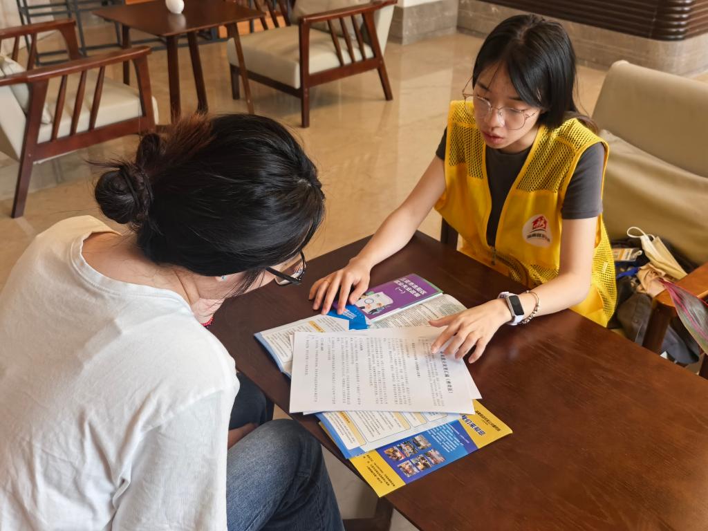 在海南省三亚市的三亚柏栎度假酒店驿站,就业服务工作人员上门为入住青年提供求职指导。新华社记者夏天 摄